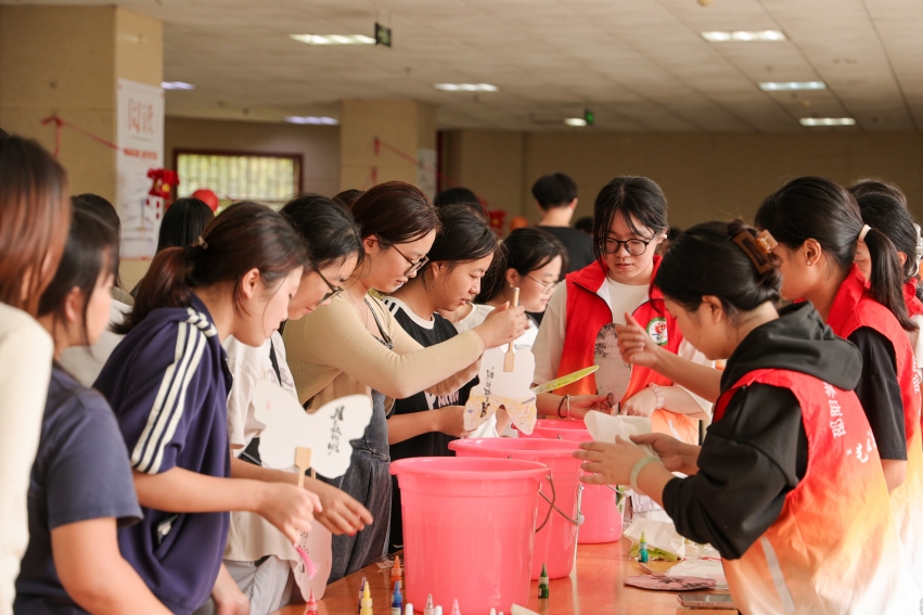 活动设置漆扇制作、套圈及猜灯谜三个环节。漆扇制作,让师生零距离感受传统技艺的魅力,每个扇面都承载着满满的节日祝福;套圈游戏中,学生精准投掷圈环,欢声笑语热闹非凡;最受师生欢迎的环节当属猜灯谜。图书馆将馆藏知识、文学典故与中秋元素巧妙结合,设计了数百条趣味盎然的灯谜,这场脑力游戏不仅增添了节日的趣味性,更潜移默化普及了传统文化知识,展现了图书馆作为“第二课堂”的独特魅力。