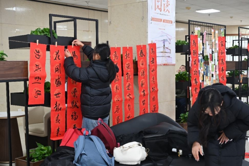 为丰富校园文化生活,传承中华优秀传统文化,2025年12月29日,图书馆联合翰墨缘书画协会,于逸夫图书馆三楼大厅成功举办“祥马踏歌至,元旦新韵来”元旦主题活动。